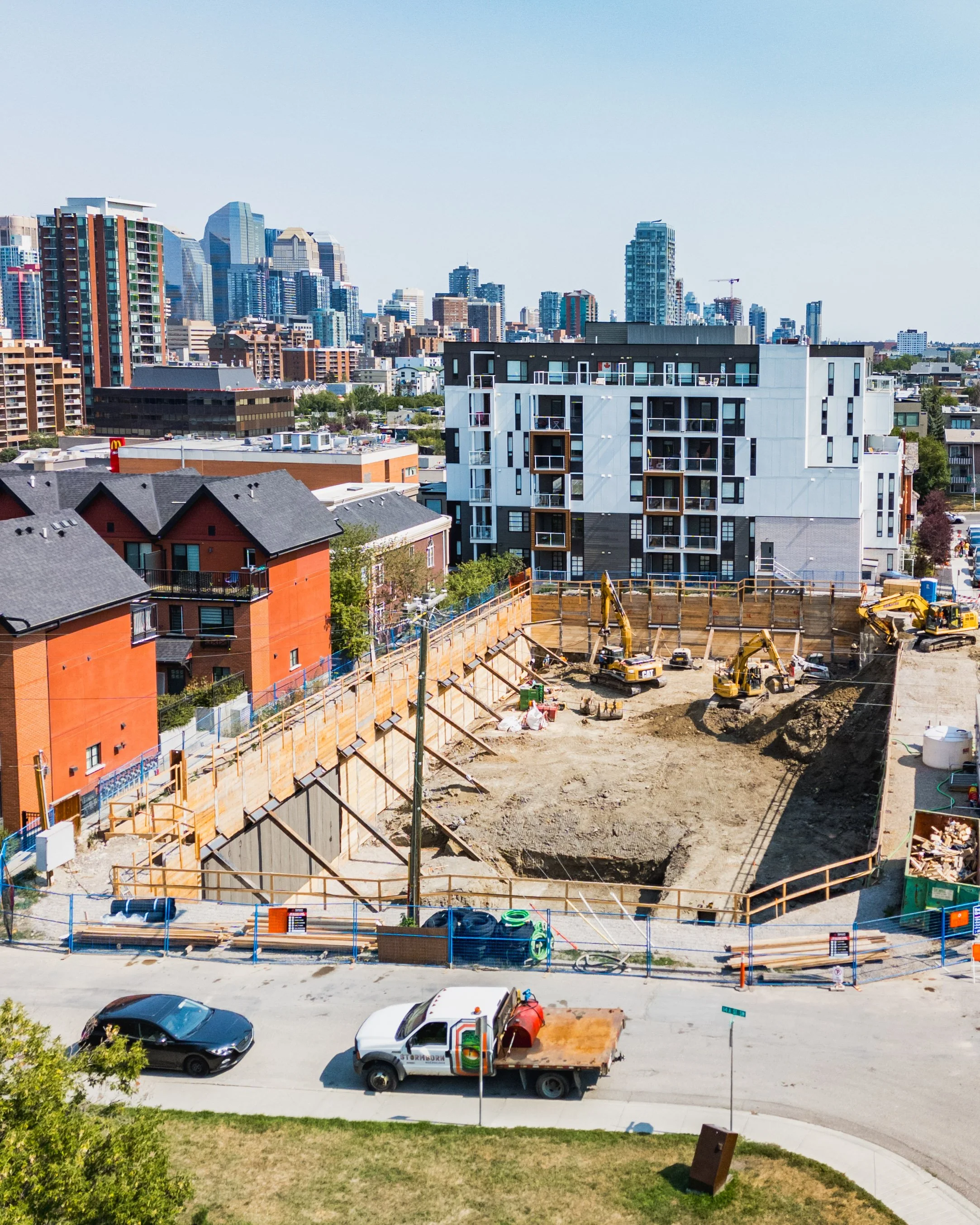 R.S. Foundation Systems Ltd. was awarded the shoring scope for The Theo development in Kelowna, which included a 7.6-meter excavation supported by 301 secant piles, 92 ground anchors, and several large corner braces and rakers. After award, RSFS collaborated with the client to optimize the shoring design, significantly reducing overall costs and ensuring the project remained within budget. The project was completed successfully, both on time and on budget.